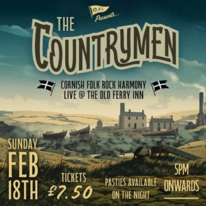 Our first appearance at The Old Ferry Inn on the slip at Bodinnick up the river from Polruan. A fresh pasty, a pint and some blokes singing songs of Cornwall. Sounds like a plan! Tickets by phone (01726 870237) or email (info@oldferryinn.co.uk)